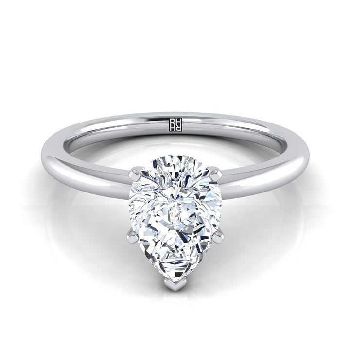 18K White Gold Pear Shape Center Round Comfort Fit Claw Prong Solitaire Engagement Ring