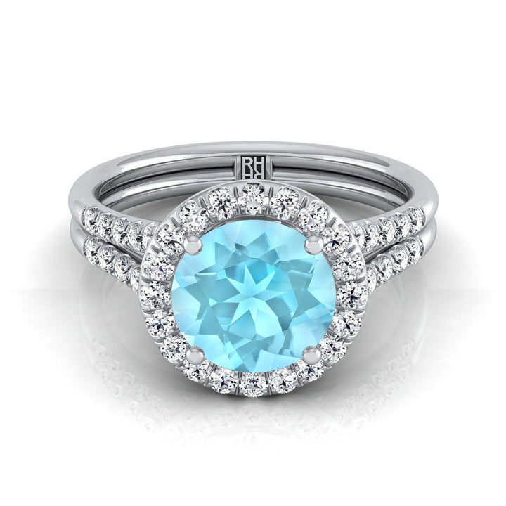 14k White Gold Engagement Ring With 6 Mm Round Aquamarine Center Stone And 44 Round Brilliant Diamonds Weighing 0.40ctw