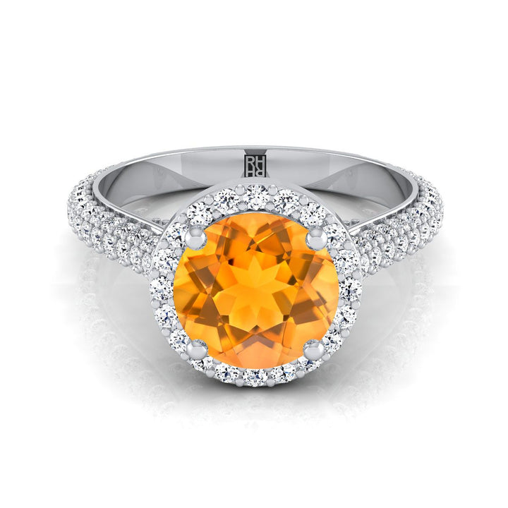Platinum Round Brilliant Citrine Micro-Pavé Halo With Pave Side Diamond Engagement Ring -7/8ctw