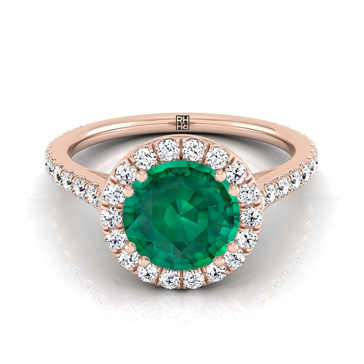 14k Rose Gold Engagement Ring With 6 Mm Round Emerald Center Stone And 42 Brilliant Cut Diamonds Weighing 0.45ctw