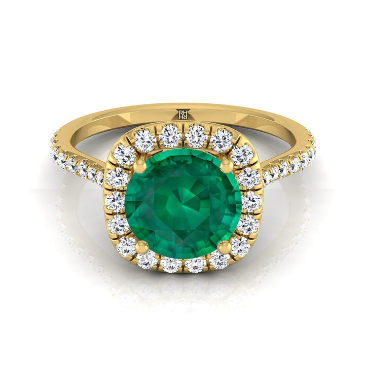 18K Yellow Gold Round Brilliant Emerald Shared Prong Diamond Halo Engagement Ring -3/8ctw