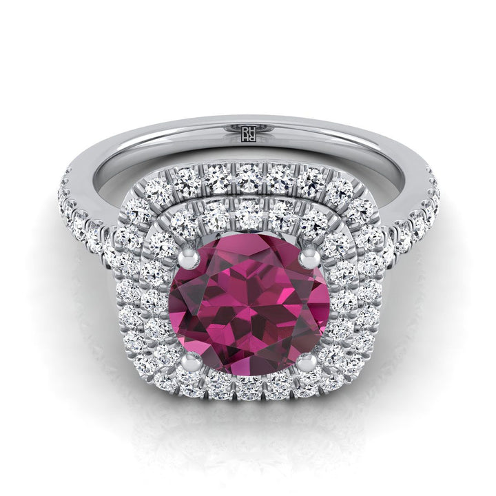 14K White Gold Round Brilliant Garnet Double Halo with Scalloped Pavé Diamond Engagement Ring -1/2ctw