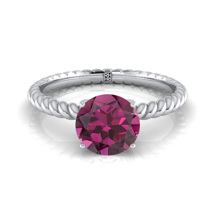 Platinum Engagement Ring With 6 Mm Round Garnet Center Stone And Rope Design Shank