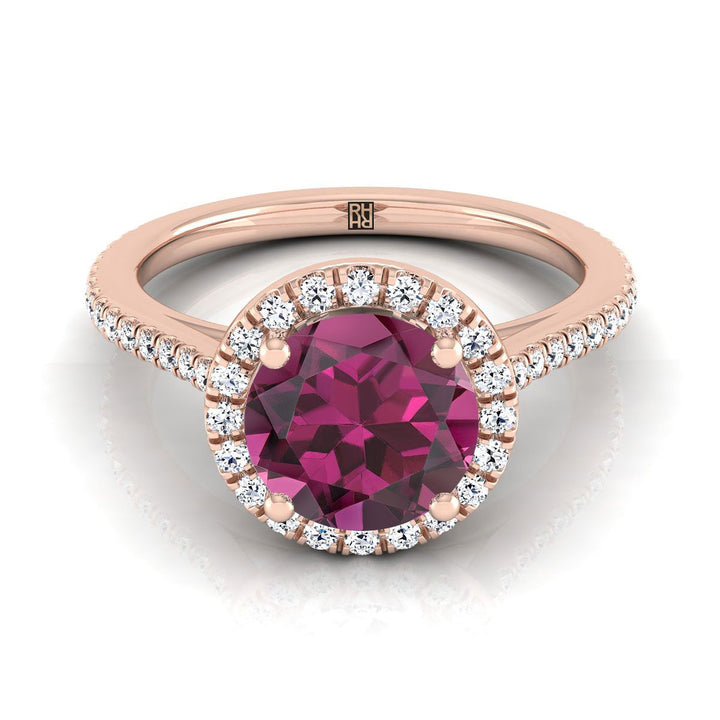 14K Rose Gold Round Brilliant Classic French Pave Halo and Linear Engagement Ring -1/4ctw