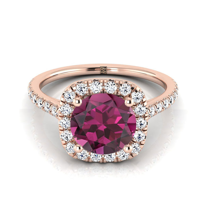 14K Rose Gold Round Brilliant Garnet Halo Diamond Pave Engagement Ring -1/3ctw