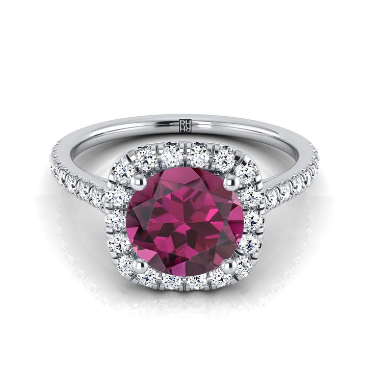 18K White Gold Round Brilliant Garnet Halo Diamond Pave Engagement Ring -1/3ctw