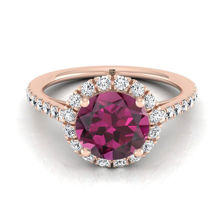 14K Rose Gold Round Brilliant Garnet Petite Halo French Diamond Pave Engagement Ring -3/8ctw