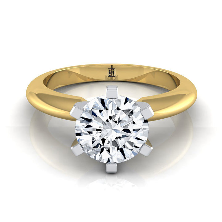 A Classic Statement Of Style, This Brilliant Cut Solitaire Engagement Ring Showcases A Modern Knife Edge Shank And 6 Prong Center Setting In 18k Yellow Gold