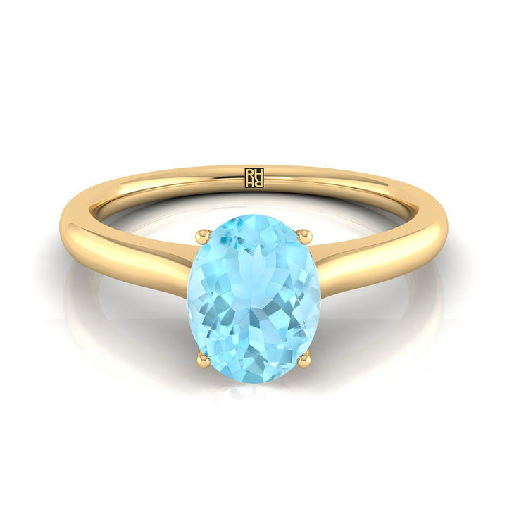14k Yellow Gold Engagement Ring With 8 X 6 Mm Oval Aquamarine Center Stone And Bezel Design Shank