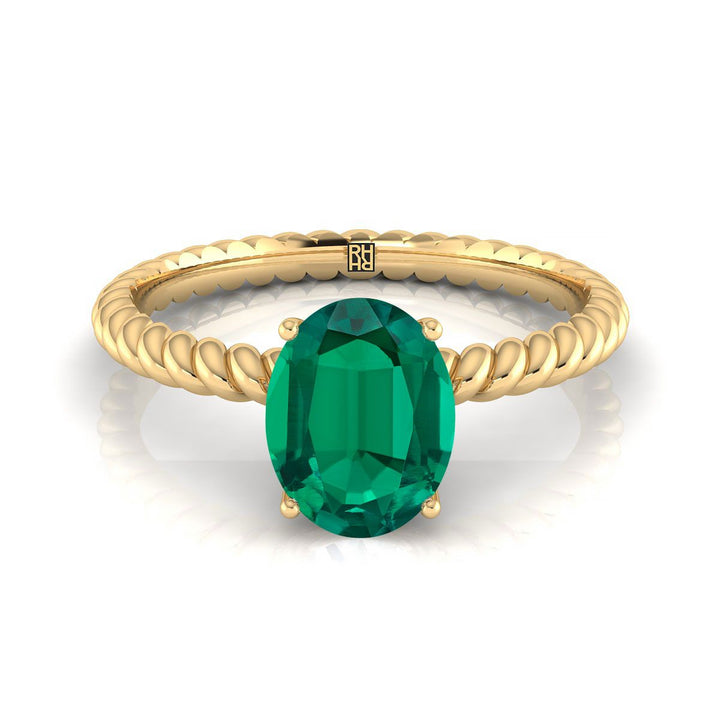 18k Yellow Gold Center Engagement Ring With 8 X 6 Mm Oval Emerald Center Stone And Rope Design Shank