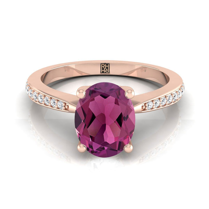 14K Rose Gold Oval Garnet Tapered Pave Diamond Engagement Ring -1/8ctw