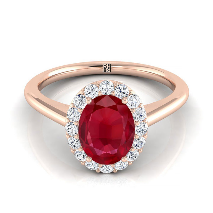 14K Rose Gold Oval Ruby Shared Prong Diamond Halo Engagement Ring -1/5ctw