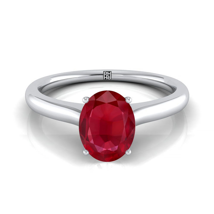 14k White Gold Engagement Ring With 8 X 6mm Oval Ruby Center Stone And Bezel Design Shank