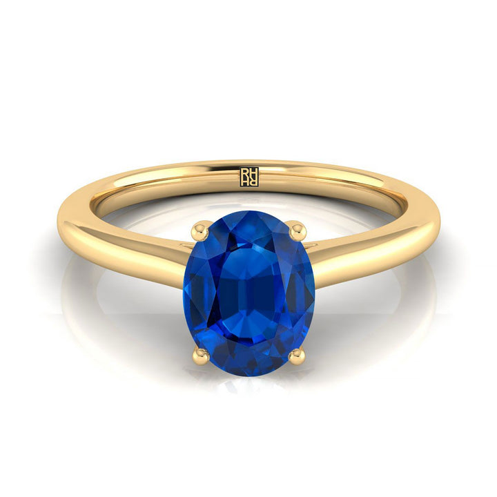 14K Yellow Gold Oval Sapphire Pinched Comfort Fit Claw Prong Solitaire Engagement Ring