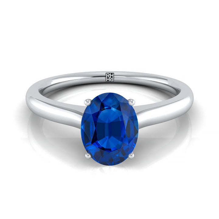 18k White Gold Engagement Ring With 8 X 6 Mm Oval Sapphire Center Stone And Bezel Design Shank