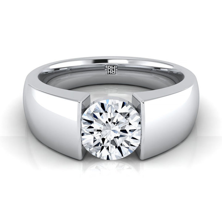 Platinum Round Brilliant Wide High Polish Band Tension Set Solitaire Engagement Ring