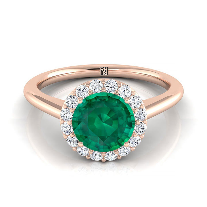 14K Rose Gold Round Brilliant Emerald Shared Prong Diamond Halo Engagement Ring -1/5ctw