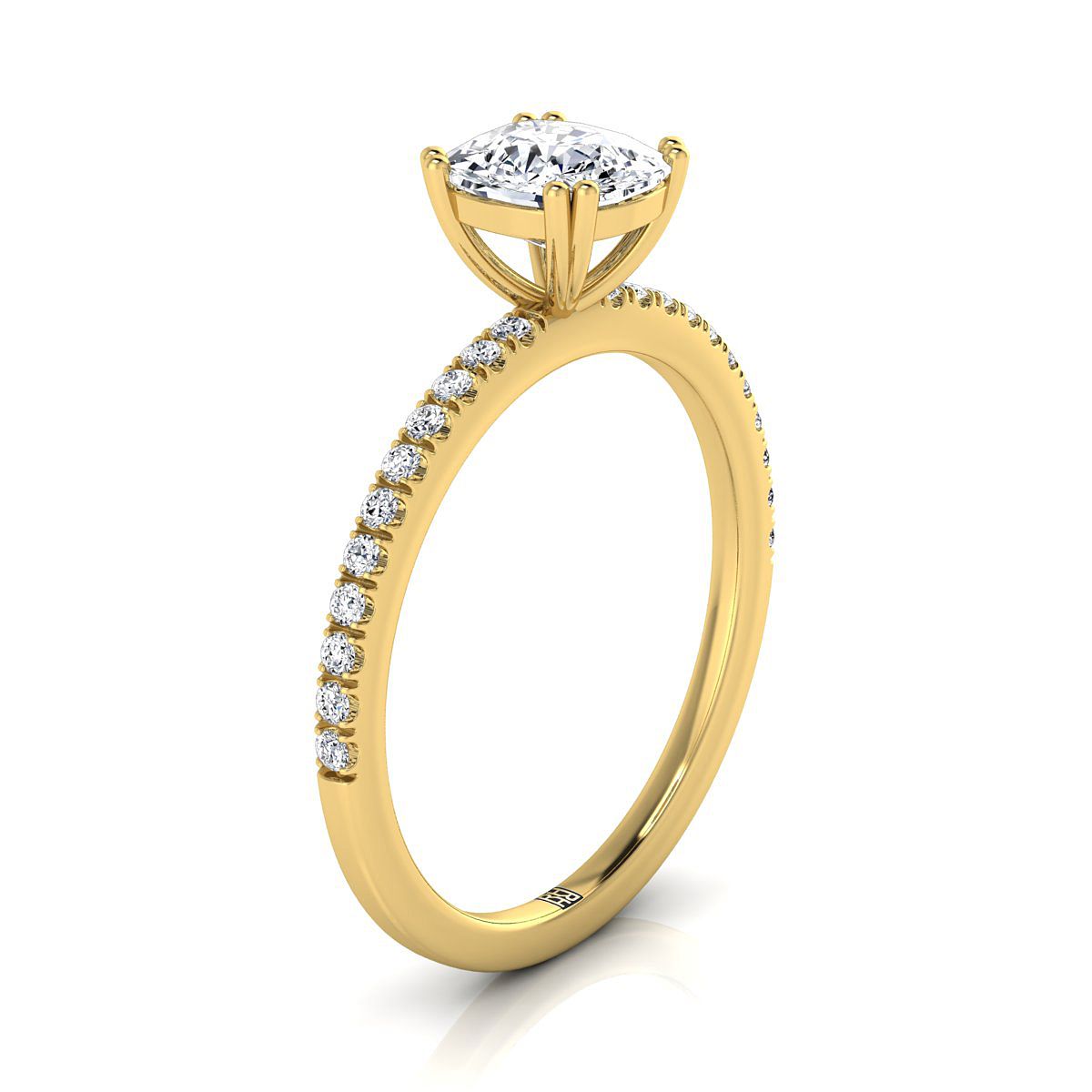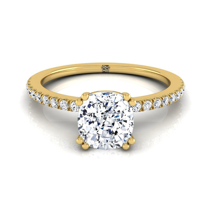 14K Yellow Gold Cushion Diamond Simple French Pave Double Claw Prong Engagement Ring -1/6ctw