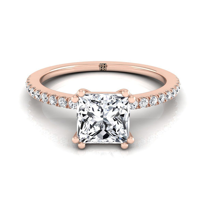 14K Rose Gold Princess Cut Diamond Simple French Pave Double Claw Prong Engagement Ring -1/6ctw