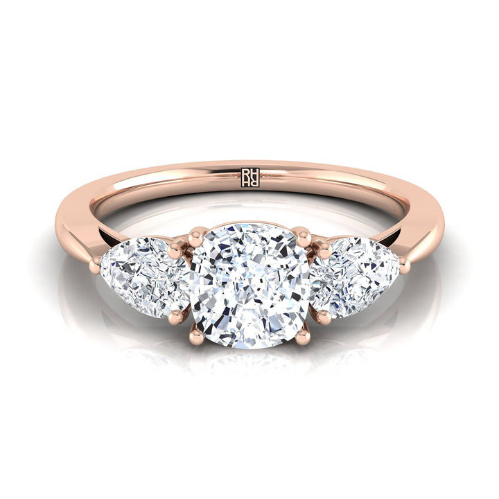 14K Rose Gold Cushion Diamond Perfectly Matched Pear Shaped Three Diamond Engagement Ring -7/8ctw