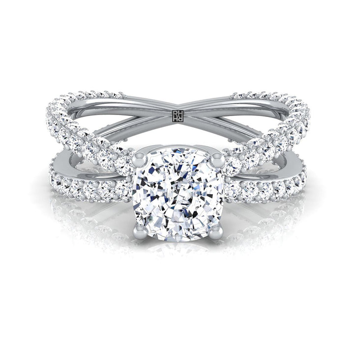 18K White Gold Cushion Open Diamond Pave Criss Cross Engagement Ring -1-1/3ctw