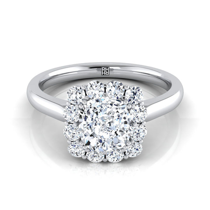18K White Gold Cushion Diamond Floral Halo Engagement Ring -1/3ctw