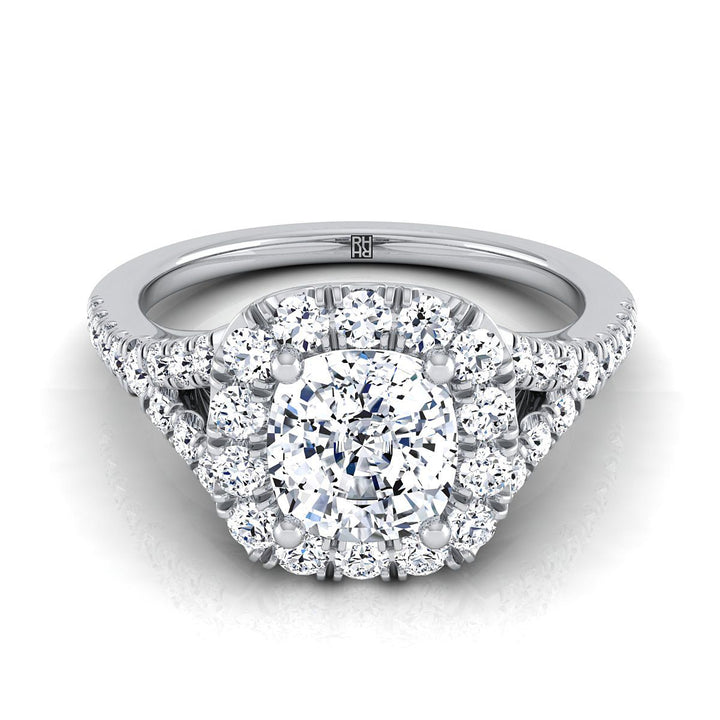 18K White Gold Cushion Diamond Simple Prong Halo Split Shank Engagement Ring -1/2ctw