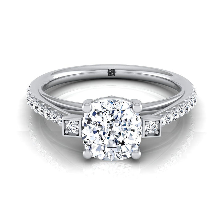 Platinum Cushion Diamond Delicate Three Stone Pave Engagement Ring -1/3ctw