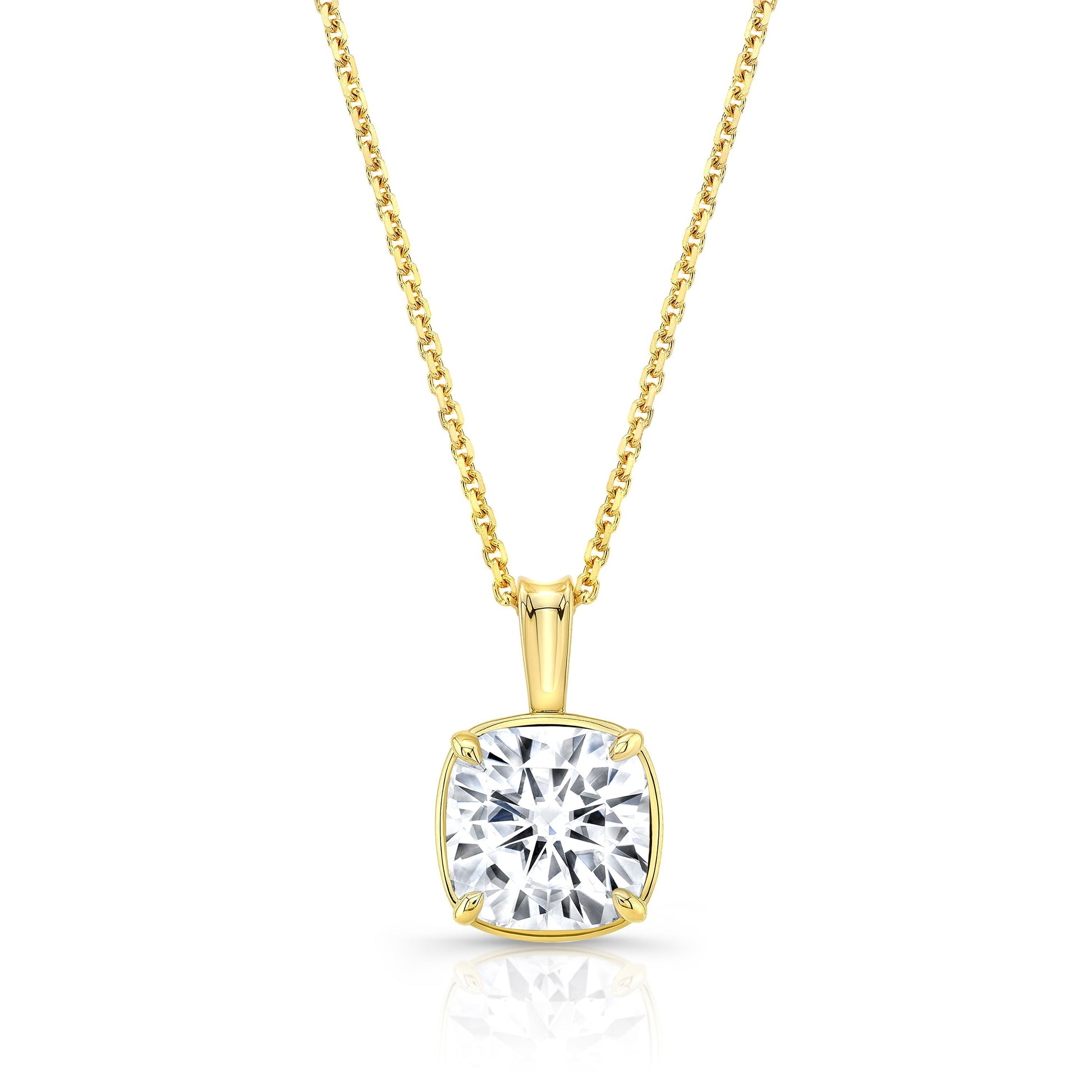 Cushion Diamond Solitaire Pendant In A 14k Yellow Gold 4-prong Leaf Scroll Setting, 2.24ct. T.w. (i, Vs1 Gia)