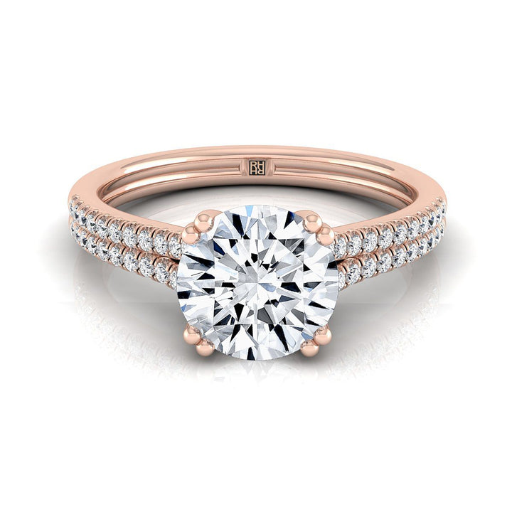 14K Rose Gold Round Brilliant Diamond Double Row Double Prong French Pave Engagement Ring -1/6ctw