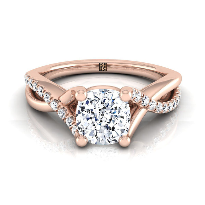 14K Rose Gold Cushion Bypass Pave Diamond Twist Engagement Ring -1/6ctw