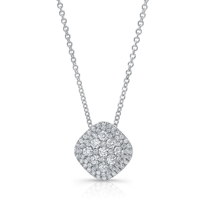 Diamond Double Border Cushion Pendant In 14k White Gold 0.48ctw 18-20 Inch Adj Chain