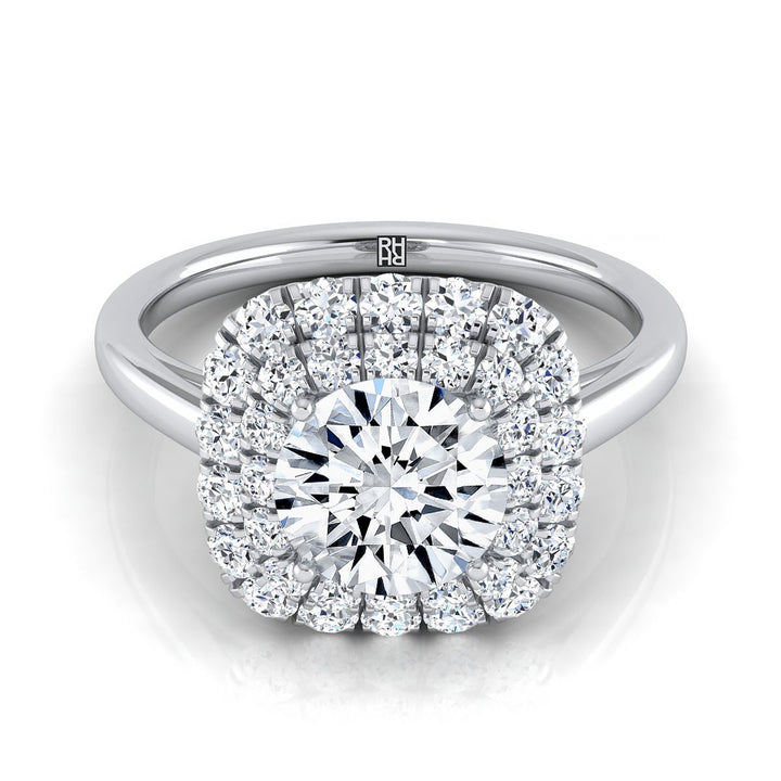 Platinum Round Brilliant Diamond Stair Step Double Halo Engagement Ring -5/8ctw