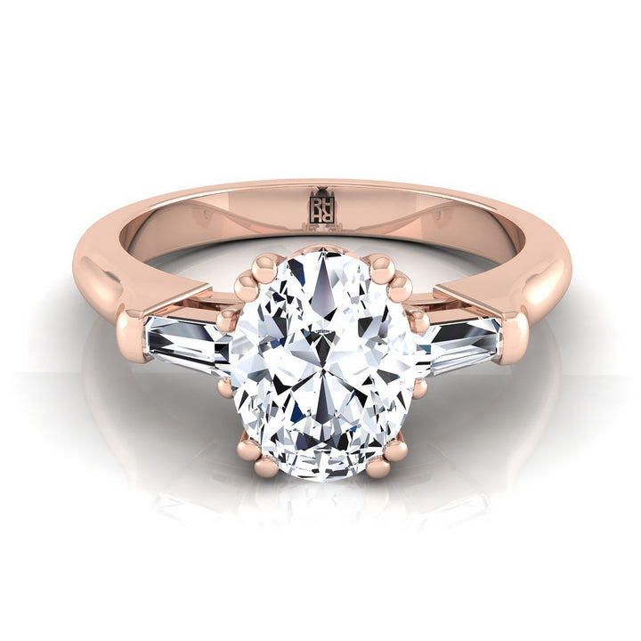14K Rose Gold Oval Diamond Tapered Baguette Engagement Ring -1/4ctw