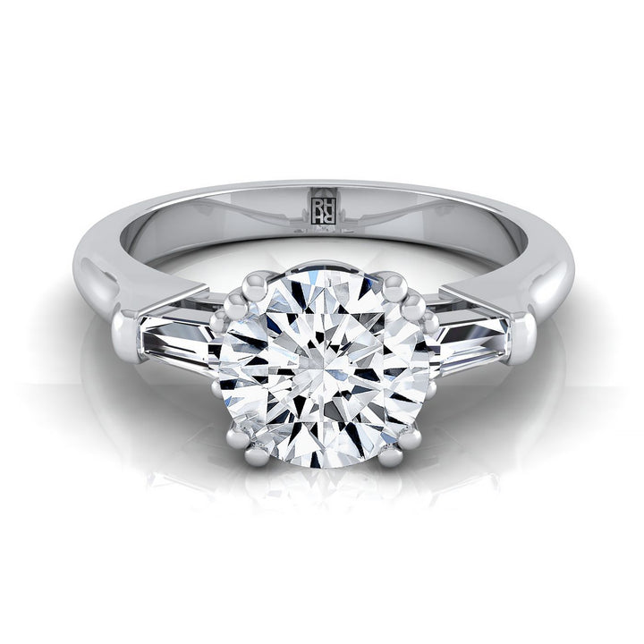 14K White Gold Round Brilliant Diamond Tapered Baguette Engagement Ring -1/4ctw