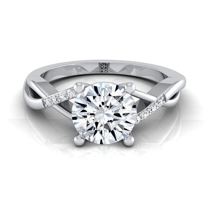 14K White Gold Round Brilliant Diamond Criss Cross Twist Engagement Ring