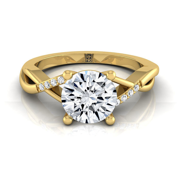 18K Yellow Gold Round Brilliant Diamond Criss Cross Twist Engagement Ring