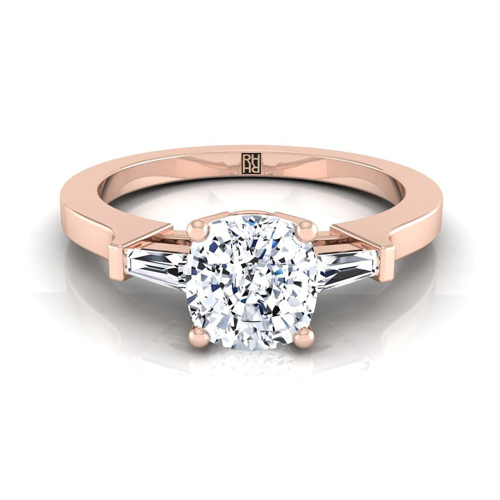 14K Rose Gold Cushion Diamond Tapered Baguette Accent Engagement Ring -1/4ctw