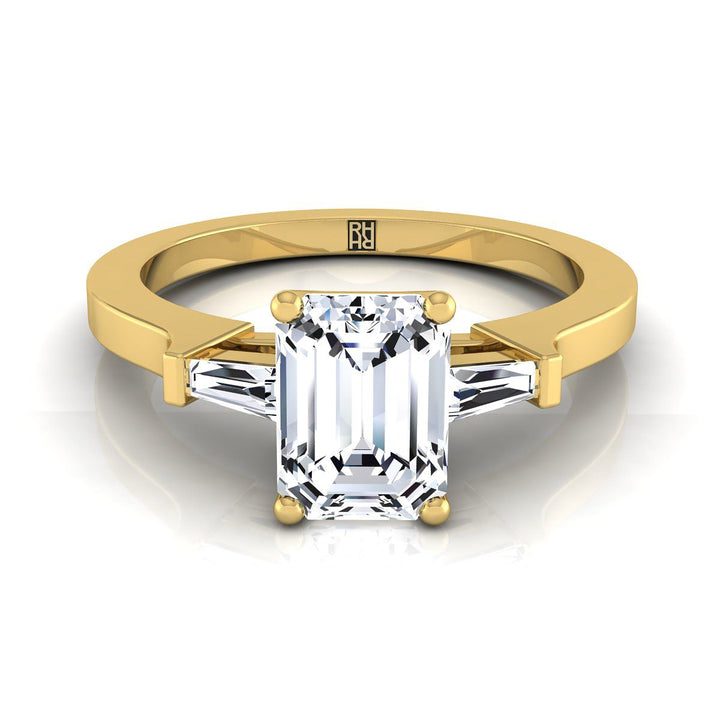 14K Yellow Gold Emerald Cut Diamond Tapered Baguette Accent Engagement Ring -1/4ctw