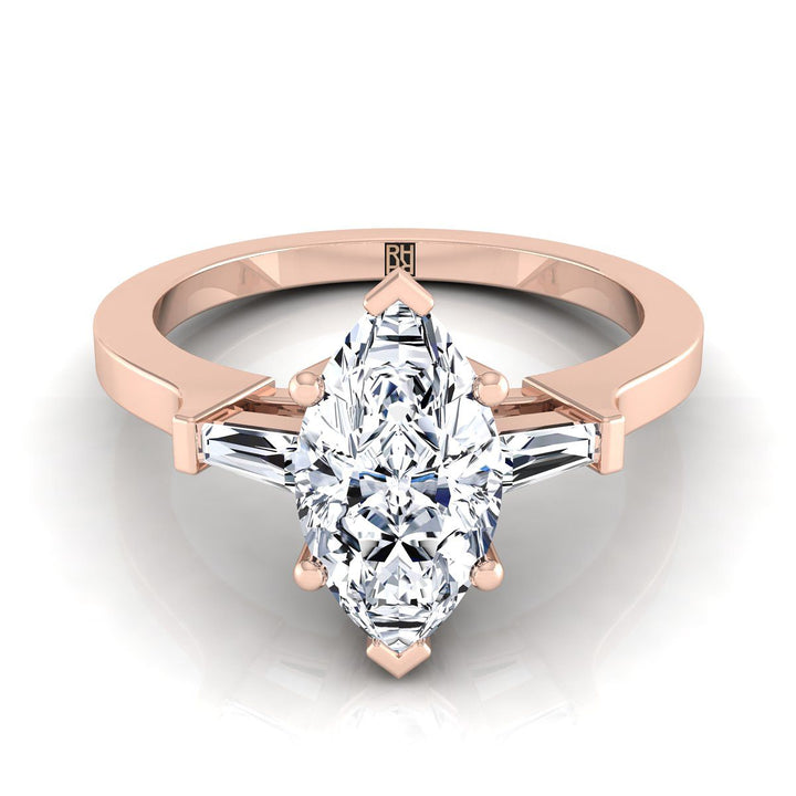 14K Rose Gold Marquise Diamond Tapered Baguette Accent Engagement Ring -1/4ctw