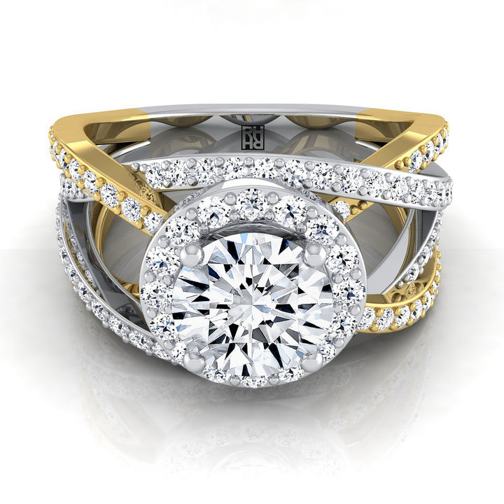Exquisitely Handcrafted In 14k Yellow And White Gold, This Diamond Engagement Ring Showcases Brilliant Cut Diamonds (h-i/vs 1.00ctw) Beautifully Prong Set In This Classic Mounting With Interweave Shank