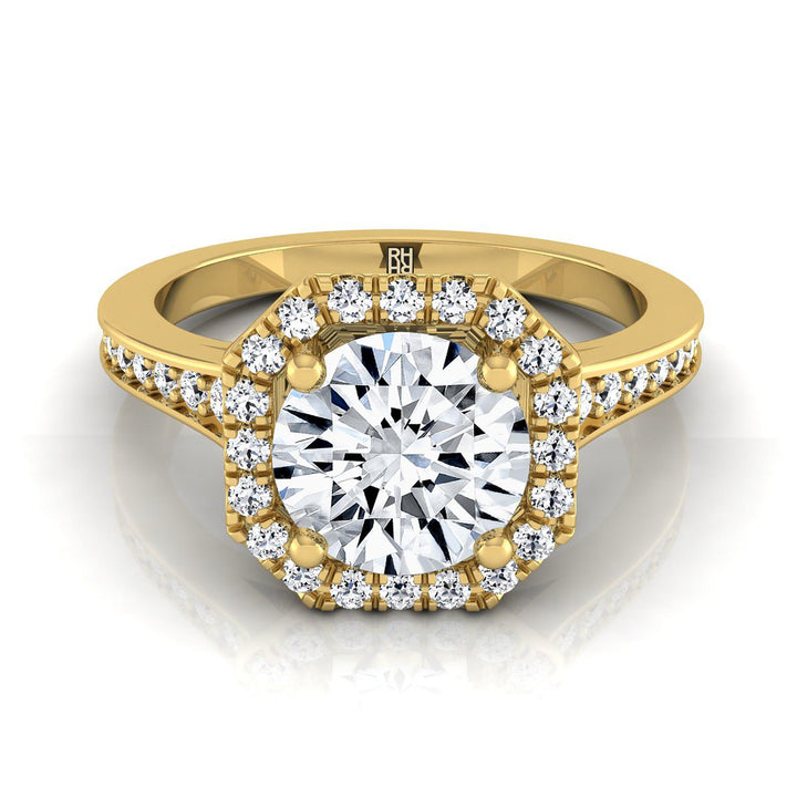 14K Yellow Gold Round Brilliant Diamond Classic Halo with Channel French Pave Engagement RIng -1/3ctw