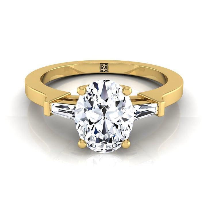 14K Yellow Gold Oval Diamond Tapered Baguette Accent Engagement Ring -1/4ctw