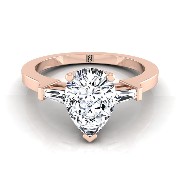 14K Rose Gold Pear Shape Center Diamond Tapered Baguette Accent Engagement Ring -1/4ctw