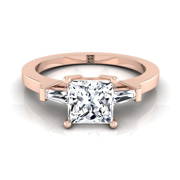 14K Rose Gold Princess Cut Diamond Tapered Baguette Accent Engagement Ring -1/4ctw