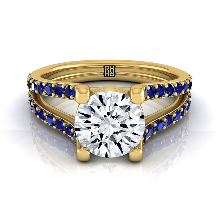 14K Yellow Gold Round Brilliant Prong Set Sapphire Split Shank Engagement Ring