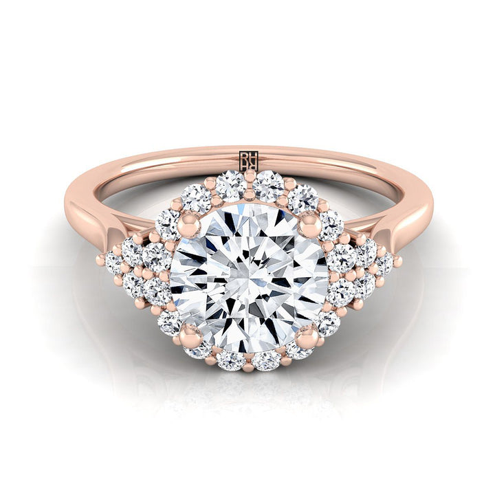 14K Rose Gold Round Brilliant Diamond Side Trio Scroll Accent Engagement Ring -1/4ctw