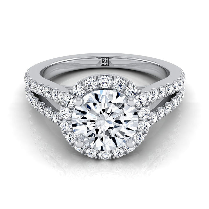 18K White Gold Round Brilliant Diamond Split Shank Halo Engagement Ring -1/2ctw