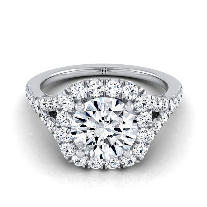 18K White Gold Round Brilliant Diamond Simple Prong Halo Split Shank Engagement Ring -1/2ctw