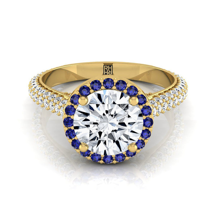 14K Yellow Gold Round Brilliant Micro-Pavé Halo With Pave Side Diamond Engagement Ring -7/8ctw